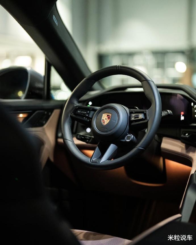 至于内饰设计,除了液晶行车电脑,中控部分的电子大曲屏以外,还搭载了副驾驶娱乐屏幕,而实体物理按键基本上都取消了,电气化程度较高。我们发现这款纯电版保时捷匹配了一体化的打孔运动座椅,非常帅气,而且座椅还是双拼色造型。当然了,保时捷拥有赛道基因,所以三辐多功能的标志性方向盘依然得到了保留。整个内饰给我们的感觉很清爽,而且电气化程度很足。可以预见,这款纯电版保时捷也将拥有四区语音识别控制系统,以及语音智能大模型,智能化将大大夯实。