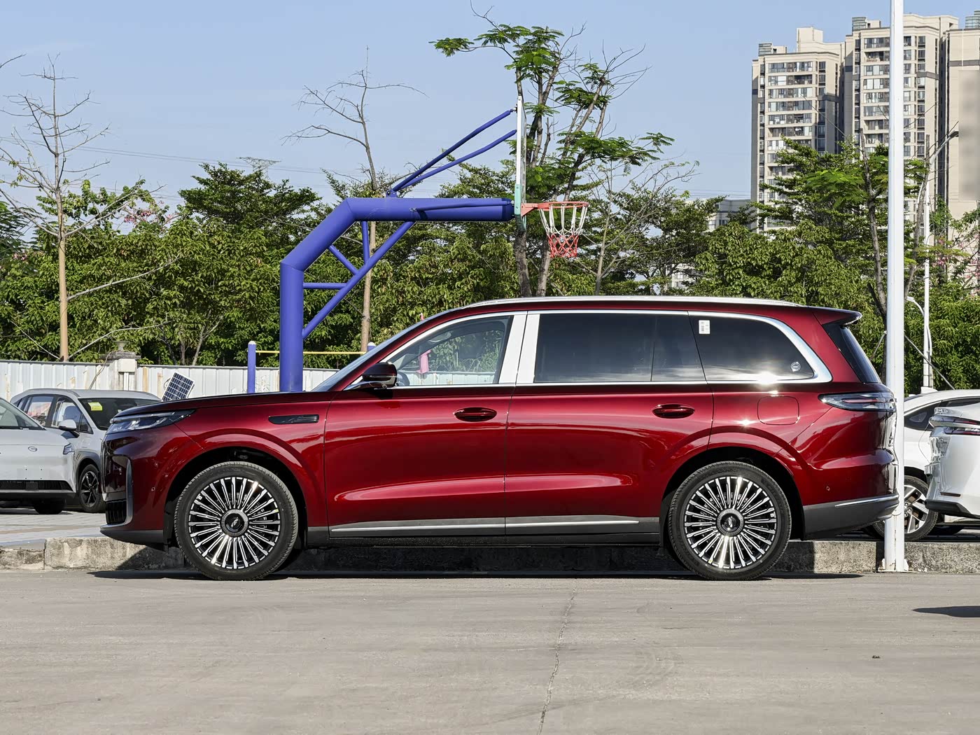 再来看车身侧面部分,5205mm车长与1998mm车宽构成近乎完美的1:2.6宽高比。平直腰线贯穿车身,配合微宽出的轮拱设计,既保证了内部空间最大化,又营造出蓄势待发的动感姿态。双色车身与21英寸密辐轮毂的组合,让这台5.2米巨兽呈现出意想不到的灵动感。隐私玻璃的运用,在提升私密性的同时,更增添了整车的商务气质。