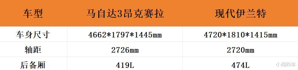 小编的身高是1米78,坐进马自达3昂克赛拉,后排腿部空间只有1拳2指,而现代伊兰特的腿部空间则是1拳4指,而且,相比较而言马自达3昂克赛拉的后排中央地板的凸起也要来的更高,整体乘坐体验打了折扣。此外,马自达3昂克赛拉的后备厢容积也只有419L,这边现代伊兰特的后备厢容积是474L。
