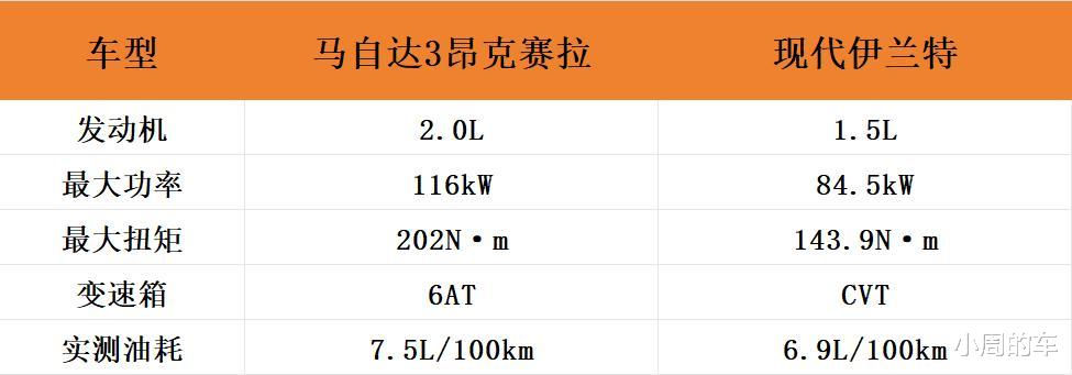当然,澎湃的动力也是要付出代价的,从车主的实际反馈来看,马自达3昂克赛拉的综合油耗值在7.5L/100km上下,而现代伊兰特的综合油耗只有6.9L/100km。