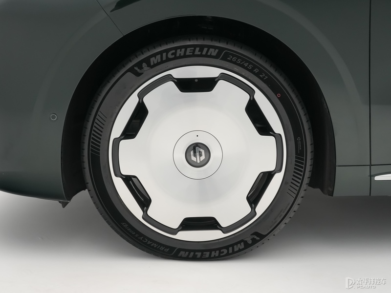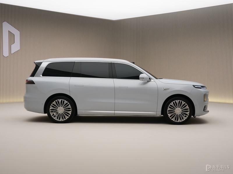 车身侧面设计简洁,风格与问界M9、理想L9等车型相似,配备隐藏式车门把手和21英寸密条辐式轮毂或“大饼式”轮毂可选,整车气场非常强。配色上,新车将会提供松谷绿、液态银、金属黑、天幕灰、光电白共5种颜色可选。
