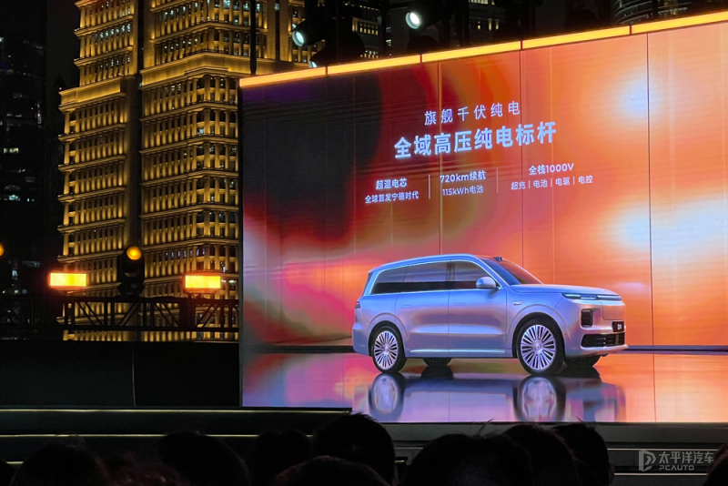 零跑D19纯电版搭载全栈1000V三电系统,系统综合功率540千瓦,百公里加速3秒级,匹配容量为115千瓦时宁德时代电池组,CLTC纯电续航最高720km,充电15分钟补能350km。