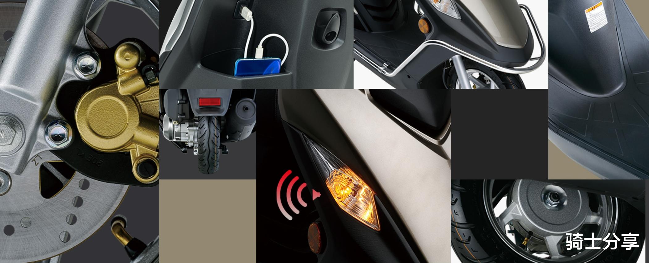 配置层面,该版本主要以务实配置为主,其中包括指针仪表、卤素灯具、前碟后鼓、转向蜂鸣器、中置挂钩、单侧开放式储物格、5V2A USB充电接口、以及10.6升座下空间等。