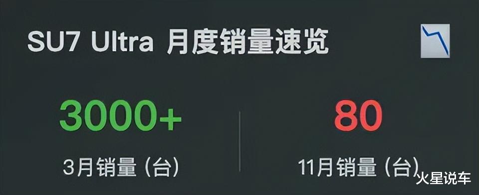 今年11月,小米汽车旗下的性能旗舰SU7 Ultra交出了一份引人关注的市场数据:根据最新上险量统计,这款定价超过50万元的车型单月销量为80辆。如果把时间线拉长观察,会发现其市场轨迹呈现明显波动——从3月上市初期超过3000辆的交付量,到如今两位数的月度表现,这一变化引发了关注度。