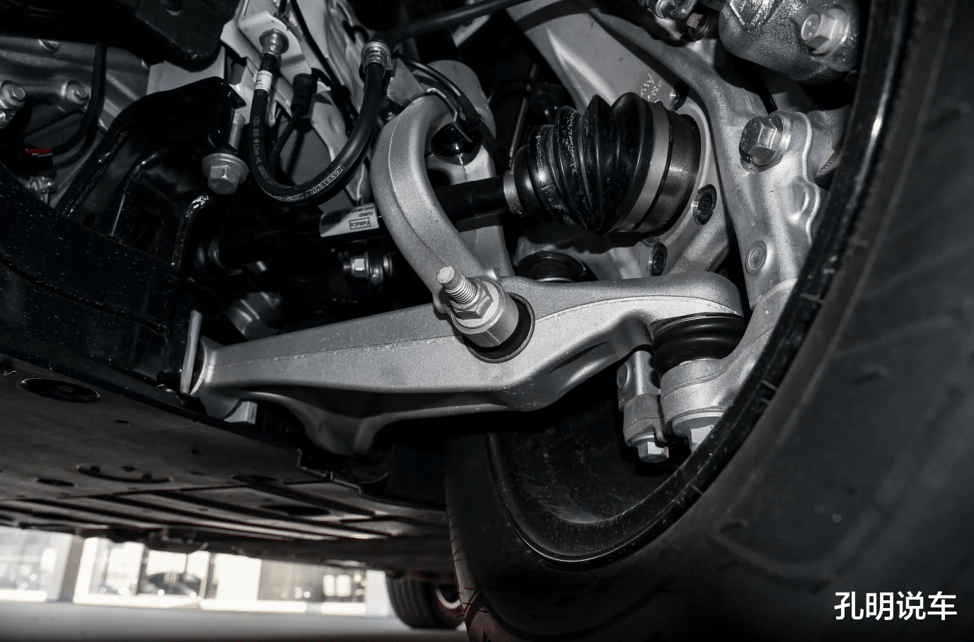 那要是比拼直线加速推背感,这款福特智趣烈马确实要比真正玩越野的纯燃油版本强很多。但是趴下去看就会发现前后采用独立悬架系统,包括后悬架也是多连杆的结构,已经没有整体桥。同时也是标准的承载式车身架构,并没有单独的大纵梁。当然电动机四驱这种技术体系也就不存在前后之间的传动轴了,所以前后并没有硬连接,如果面对一些极端的越野路况,这款车型还是无法应对了。