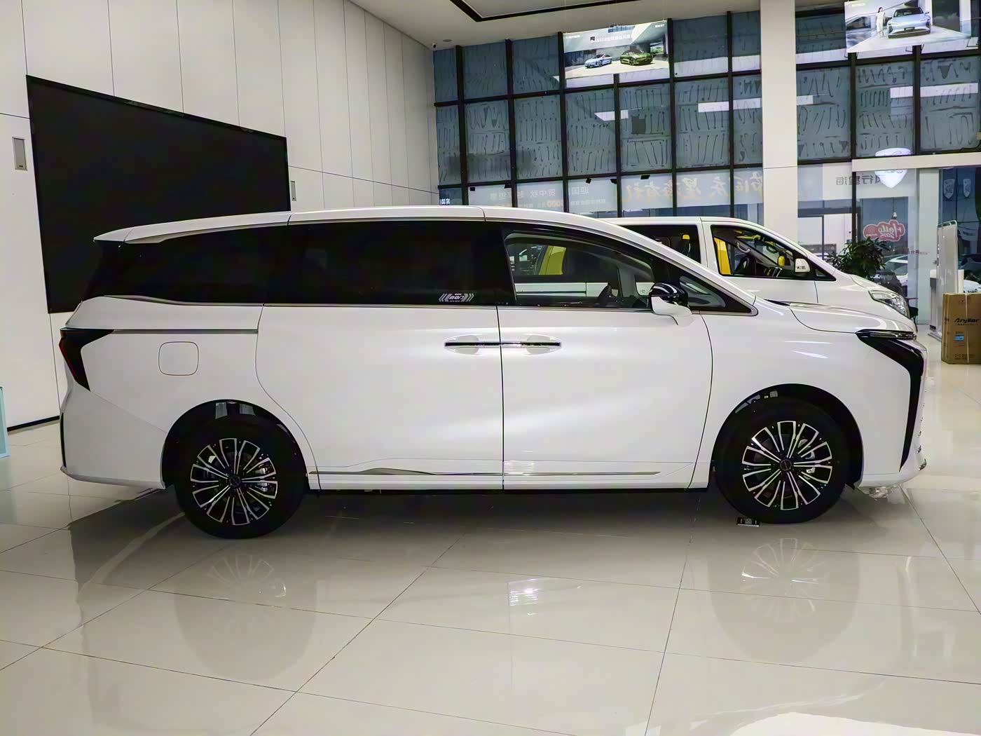 再来看车身侧面部分,车身侧面采用修长舒展的轮廓,5251×1920×1810mm的长宽高搭配3018mm的超长轴距,奠定了充裕的内部空间基础,视觉上尽显中大型MPV的大气质感。分段式腰线设计灵动流畅,从前翼子板延伸至车尾,有效拉伸了车身横向视觉效果,搭配D柱独特的波纹装饰,增添了时尚气息,避免了侧面造型的单调感。细节设计充分考量实用需求,全系标配的双侧电滑门支持6种操控方式,包括钥匙控制、车内按键、语音指令等,即使在狭窄车位也能优雅开启,雨天上下车无需担心淋湿。车窗边框采用镀铬饰条点缀,提升了精致感,搭配大尺寸侧窗设计,让车内采光更充足。