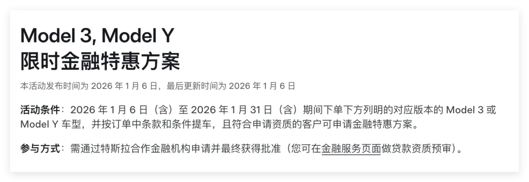 Model3/Y首付7.99万起,月供可低至1918元;ModelYL首付9.99万起,月供可低至2947元。