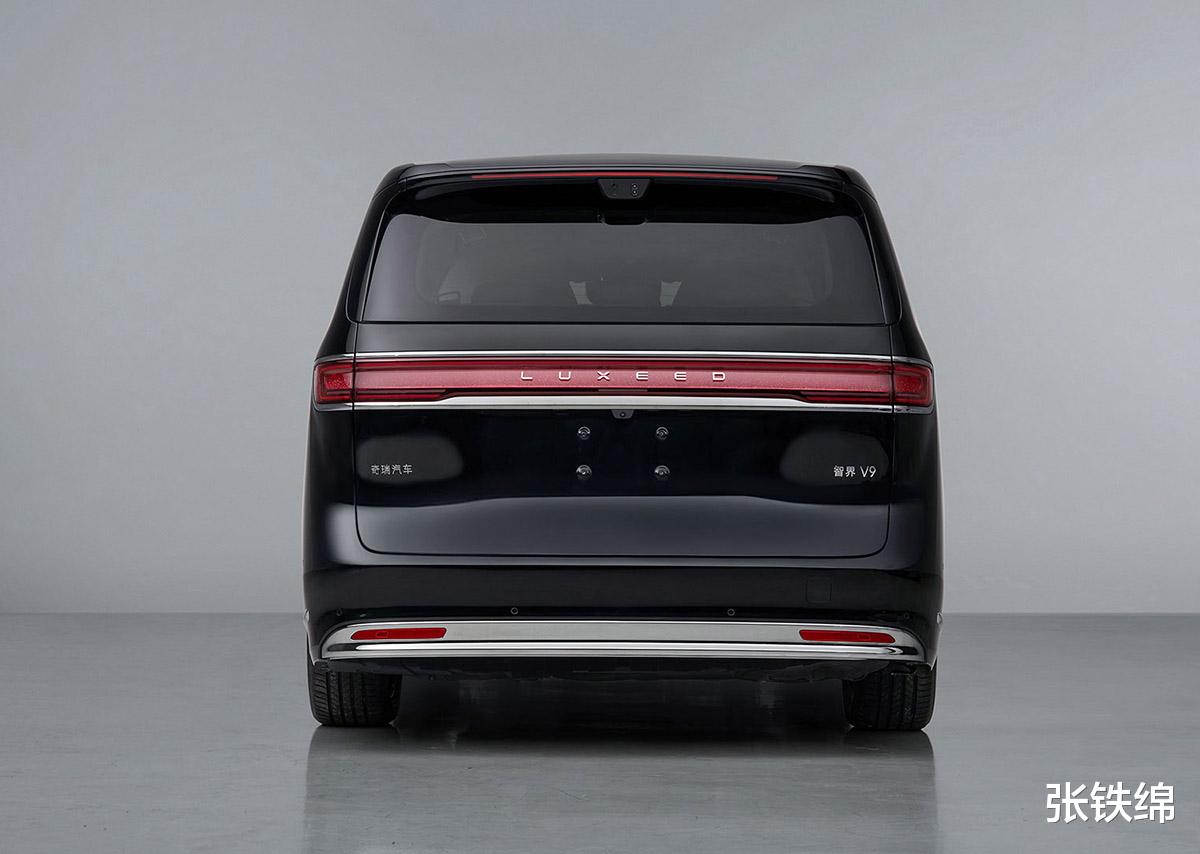 尾部整体造型轮廓很简约硬朗,尾灯使用了横贯式的设计,并且带有环绕式的镀铬饰条,有着不错的档次感,包括后杠的下部使用了宽厚的镀铬装饰。后尾门上带有奇瑞汽车和智界V9的字样。