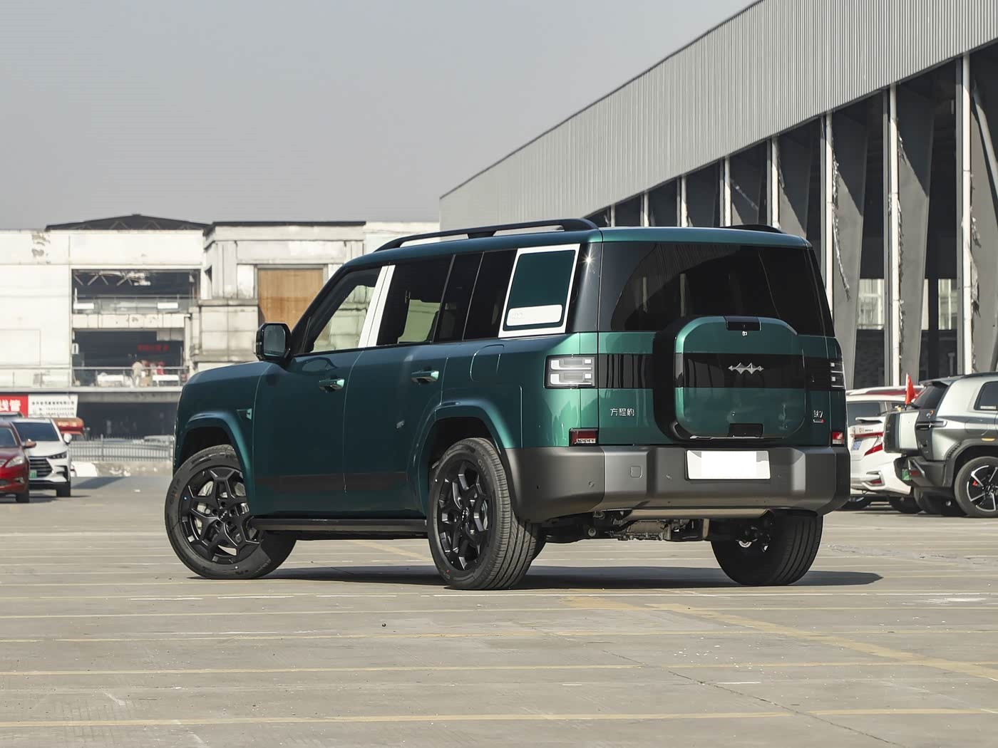 再来看车尾部分,车尾延续硬朗方正的设计语言,双层方形尾灯由128颗LED灯珠组成,夜间辨识度极高。外挂式"小书包"实为32.5L储物箱,采用轻量化铝合金材质并经过防刮处理,内部空间可容纳全套越野工具。左开式尾门与一体成型银色护板,既方便取物又增强防护性。这种将实用功能融入硬派美学的设计,体现了方程豹对用户需求的深刻理解。