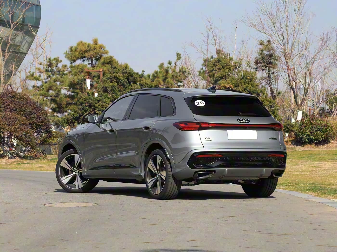 再来看车身侧面部分,全新Q5L通过加长轴距至2945mm(较前代增加38mm),实现了更为修长的体态。隐藏式门把手设计不仅降低了风阻系数,还提升了整体美感。车身线条流畅而富有张力,上扬的腰线营造出蓄势待发的动感,搭配19英寸或20英寸的多样化轮圈选择,进一步强调了其运动定位。车顶行李架和车窗饰条的细节处理,则在不经意间流露出豪华品牌的精致工艺。