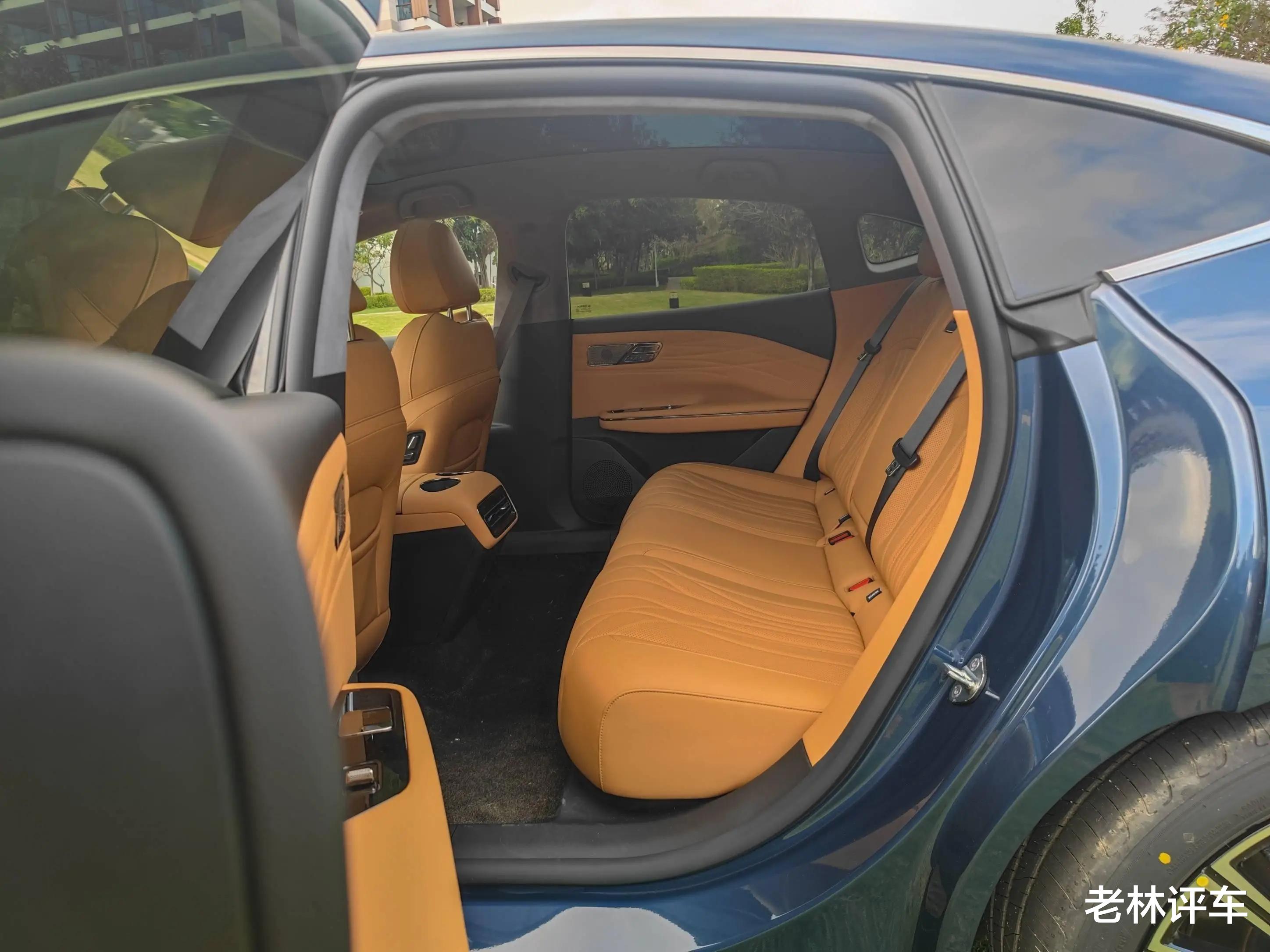 座椅方面,前排座椅标配加热/通风,后排座椅可选装前后调节和靠背调节,腿部空间还是很宽敞的,家用绰绰有余。