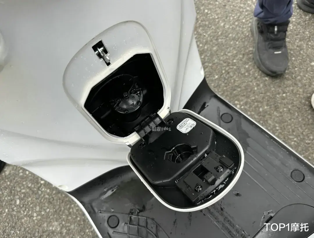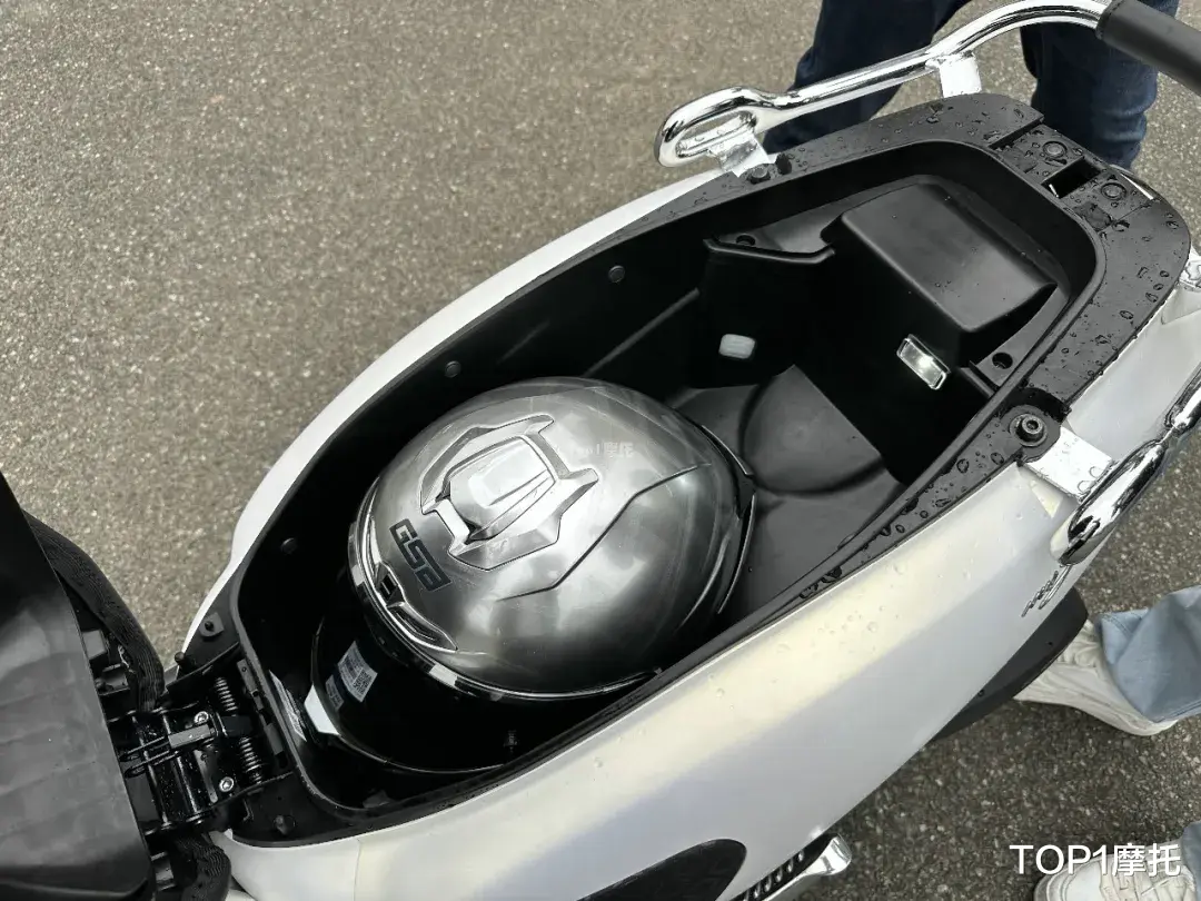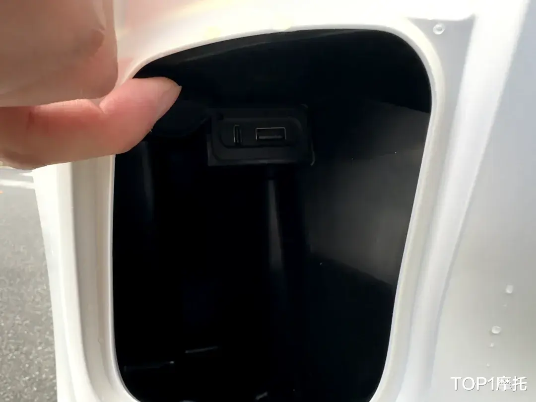 五羊本田NWF150仅有一个左侧手套箱,内部提供USB+Type-C两个充电接口,手套箱深度还行,但因为有拐角的设计所以放常规的矿泉水和饮料可能比较费劲,但是放手机或者小件物品没问题。