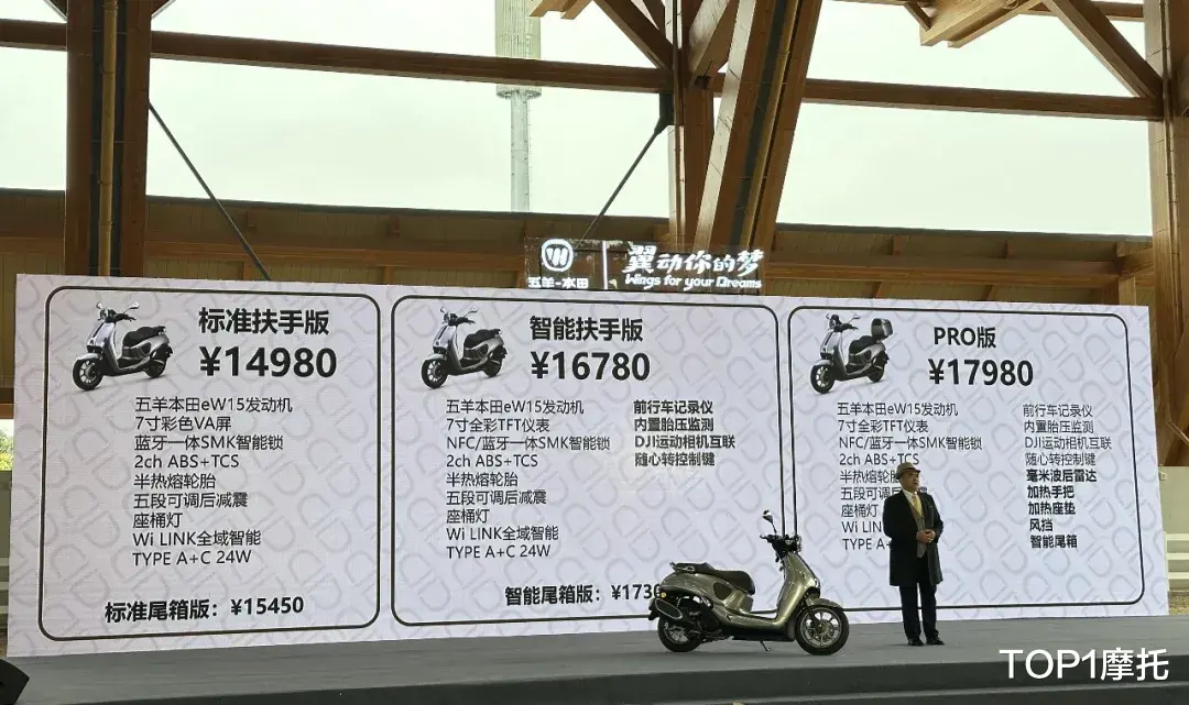 五羊本田NWF150有三个版本,售价分别为:标准扶手版14980元,智能扶手版16780元,PRO版17980元。其中标准版和智能版均无尾箱和雷达,而PRO版则是标配智能尾箱+雷达,具体的配置差异如上图所示,大家可以根据自己的需求去选择。