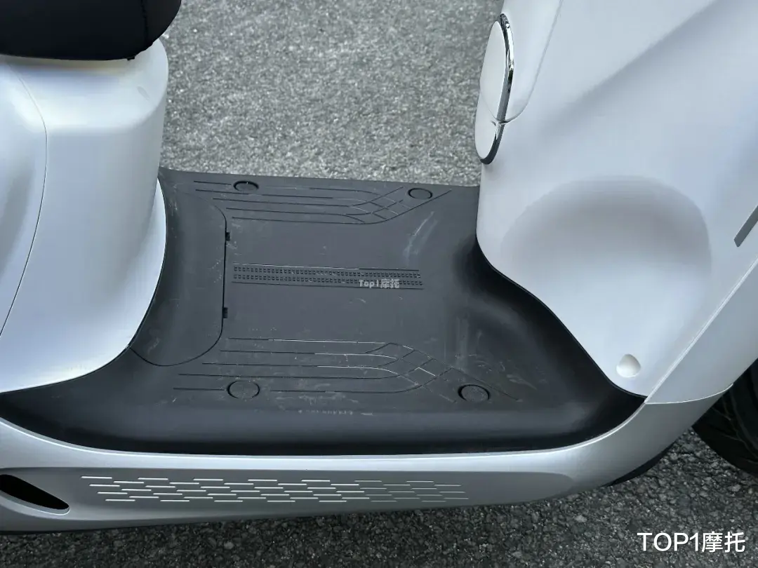 前置油箱容量8.3L,官方给到的参考续航是350Km+,这个续航对于复古踏板来说是很够用的。因为车身覆盖件造型的变化,以及取消了斜脚踏的设计,NWF150的平踏板空间没有另外两兄弟那么大,不过依然有长290mm宽420mm的尺寸。行走系统规格