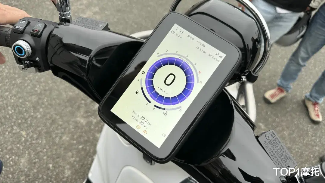 五羊本田NWF150上最抢眼的配置,莫过于这块巨大的7寸竖屏TFT仪表了,虽然这块巨屏跟复古踏板不搭,但厂家表示因为NWG和NWT都是大屏仪表,如果在NWF150上换成小屏会有减配之嫌,同时也不利于各种智能化功能的展现。