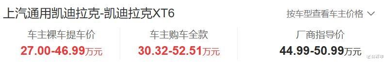 凯迪拉克XT6售价44.99-50.99万元,看上去价格不便宜,实际上这款车的优惠力度很大,车主的提车价格为27.00-46.99万元。