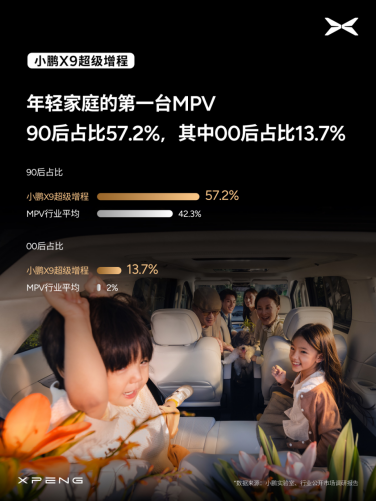 金羊网讯在过去的发展历程中,车辆的物理尺寸长期与社会地位、职业属性和家庭结构深度绑定。特别是MPV这一细分品类,在很长一段时间内都被视为公务和商务接待的工具车。然而,在1月19日举行的“小鹏X9超级增程用户画像分享交流会”上,一组惊人的数据彻底颠覆了行业认知:小鹏X9的购车者中,90后占比高达57.2%,甚至00后也占据了13.7%的席位。为什么曾经钟情于“小巧灵活”的年轻人,现在开始排队买大车了?