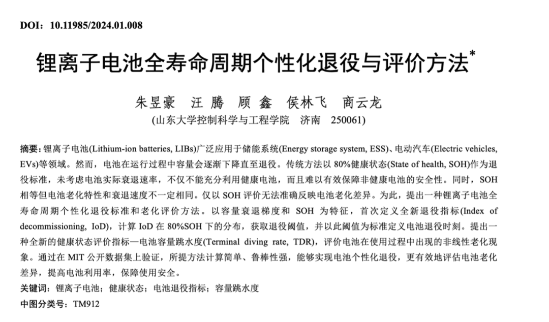 最近《电气工程学报》刊载山东大学的一篇文章《锂离子电池全寿命周期个性化退役与评价方法》,里面就讲到,车用动力电池使用传统的SOH 80%这个退役标准,用来一刀切的评价动力电池的老化水平,局限性较大。