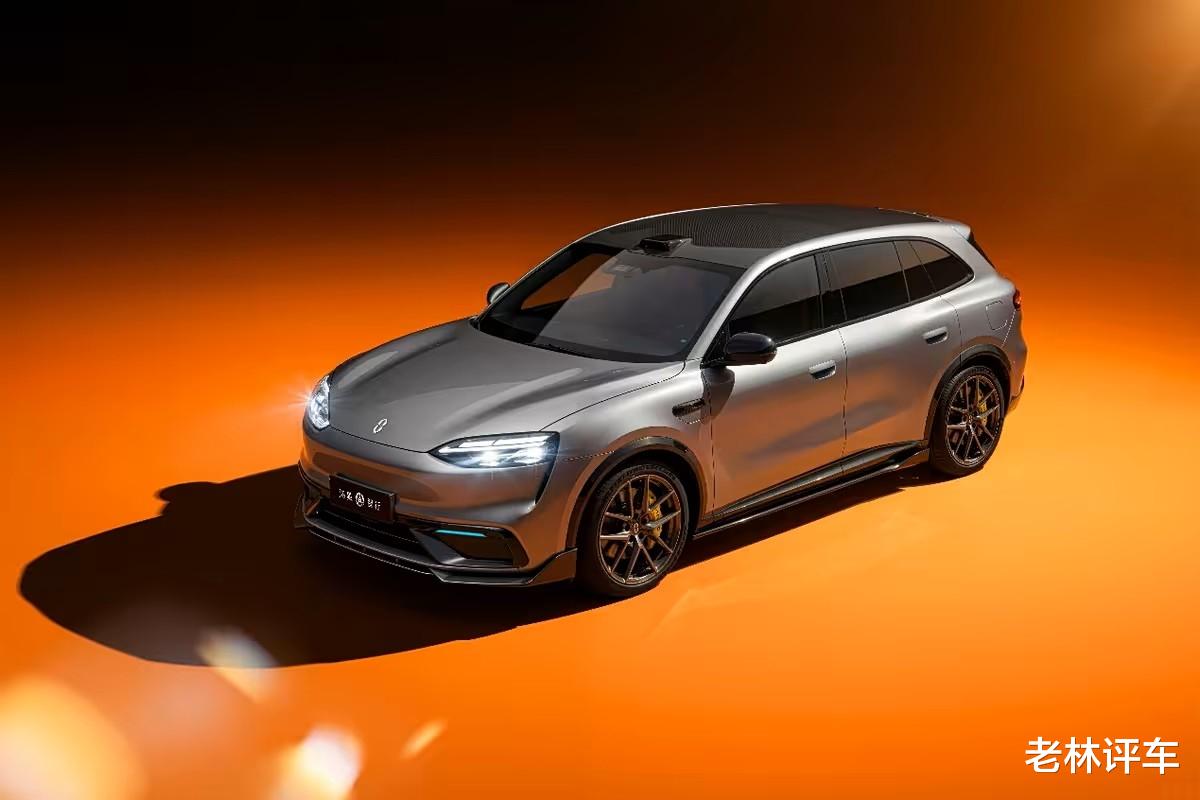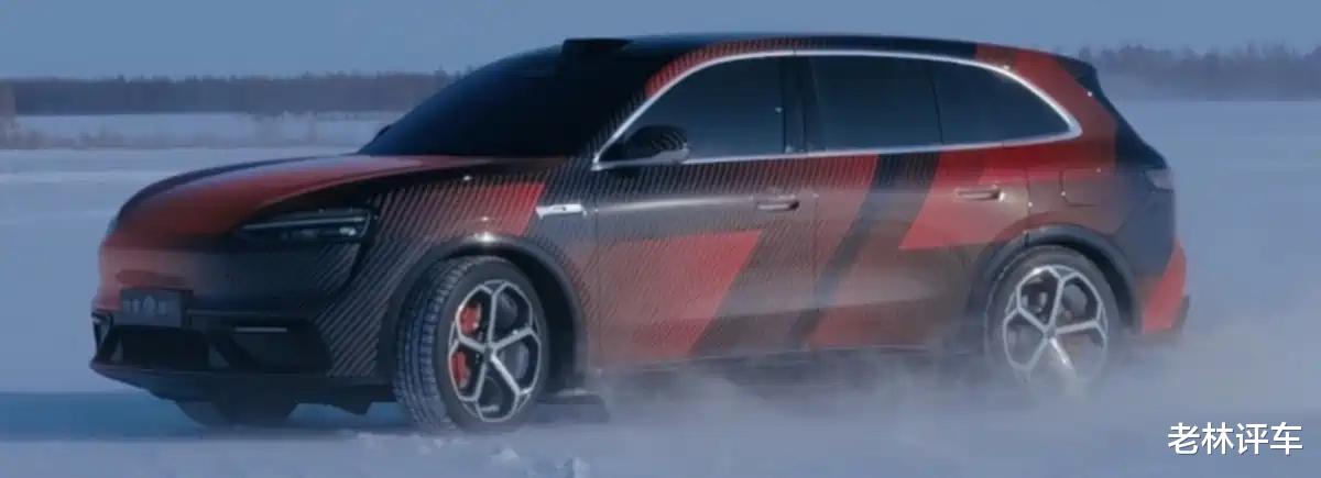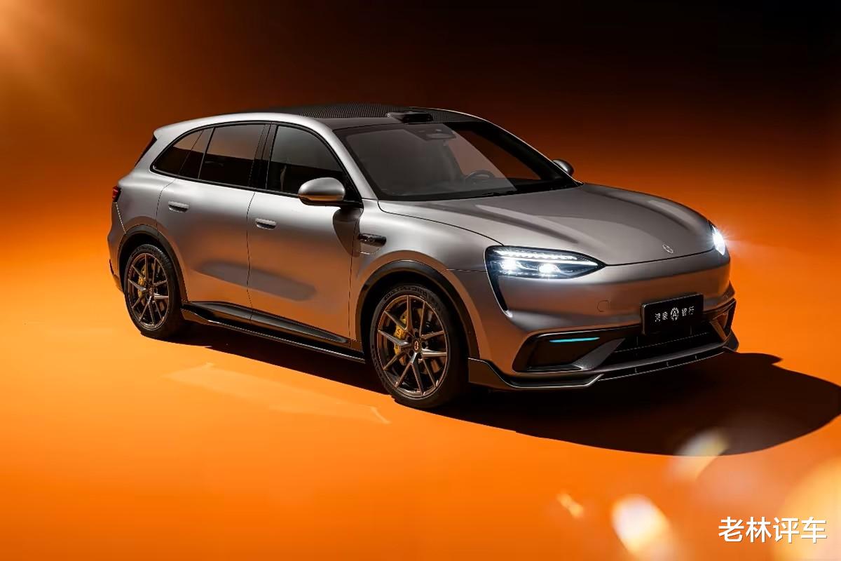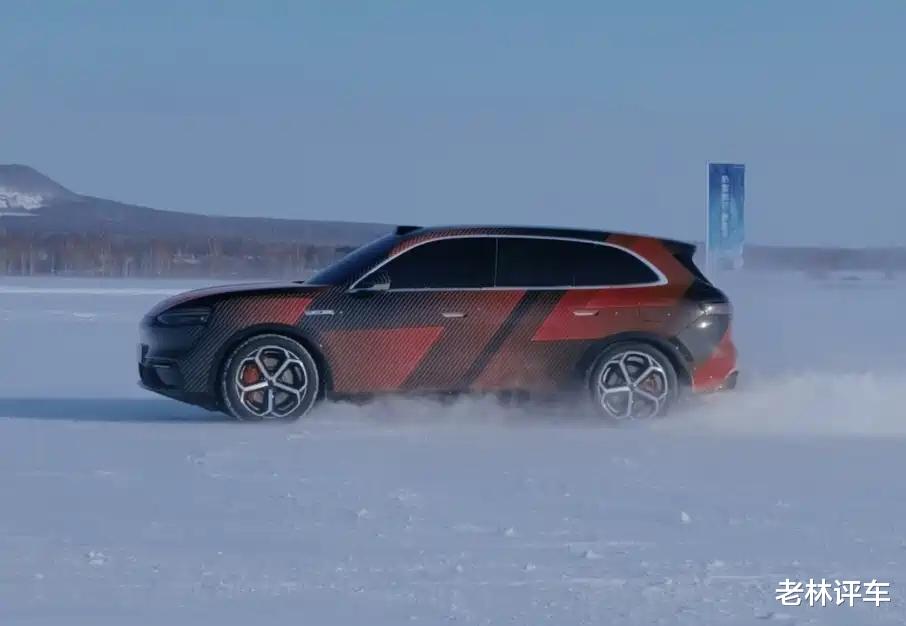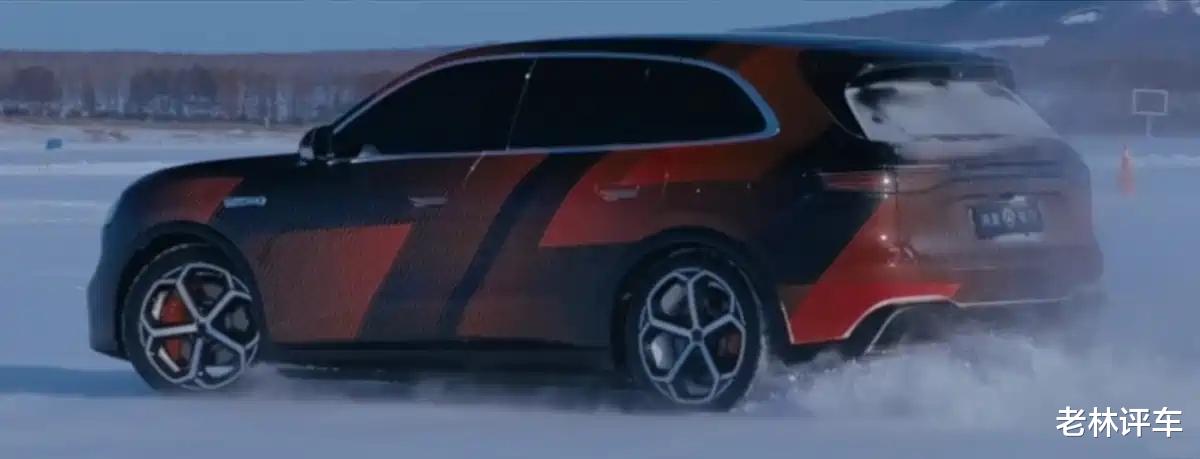 车侧部分,和问界M5十分相似,不过新车的尺寸更大,所呈现出的视觉效果也就更修长。还能看到,新车配备了双五辐式轮圈,配备了橙色刹车卡钳。根据前轮刹车卡钳靠后的位置可以判断出,它的前悬架是双叉臂,后悬架就是多连杆了。另外,新车还配备了半隐藏式门把手,对待北方地区的消费者更加友好。