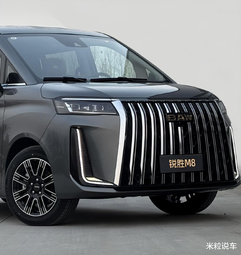 这款锐胜M8新能源的优势并不少。首先看外观造型,搭载了运动大包围,车头部分其实也借鉴了丰田埃尔法的设计,夸张的运动包围,再加上金色的车标,这样的颜值你觉得如何呢?值得一提的是,车头部分还拥有大量的车载雷达波以及车载摄像头,所以说也是搭载了智能驾驶辅助系统的。