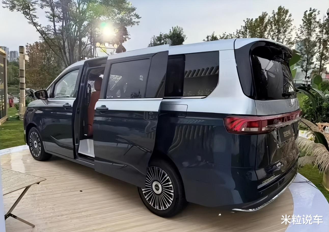 从侧面我们也能够看得出来,这款锐胜M8新能源采用了双色车身构造,这种造型已经有点迈巴赫的感觉了,看起来特别尊贵。除此之外,中高配置车型上还搭载了双侧电动移滑门设计,以及多辐式密集轮毂造型。如果选择单色的,个人建议还是升级一下外观,毕竟单色的外观配色看起来确实较为单调。