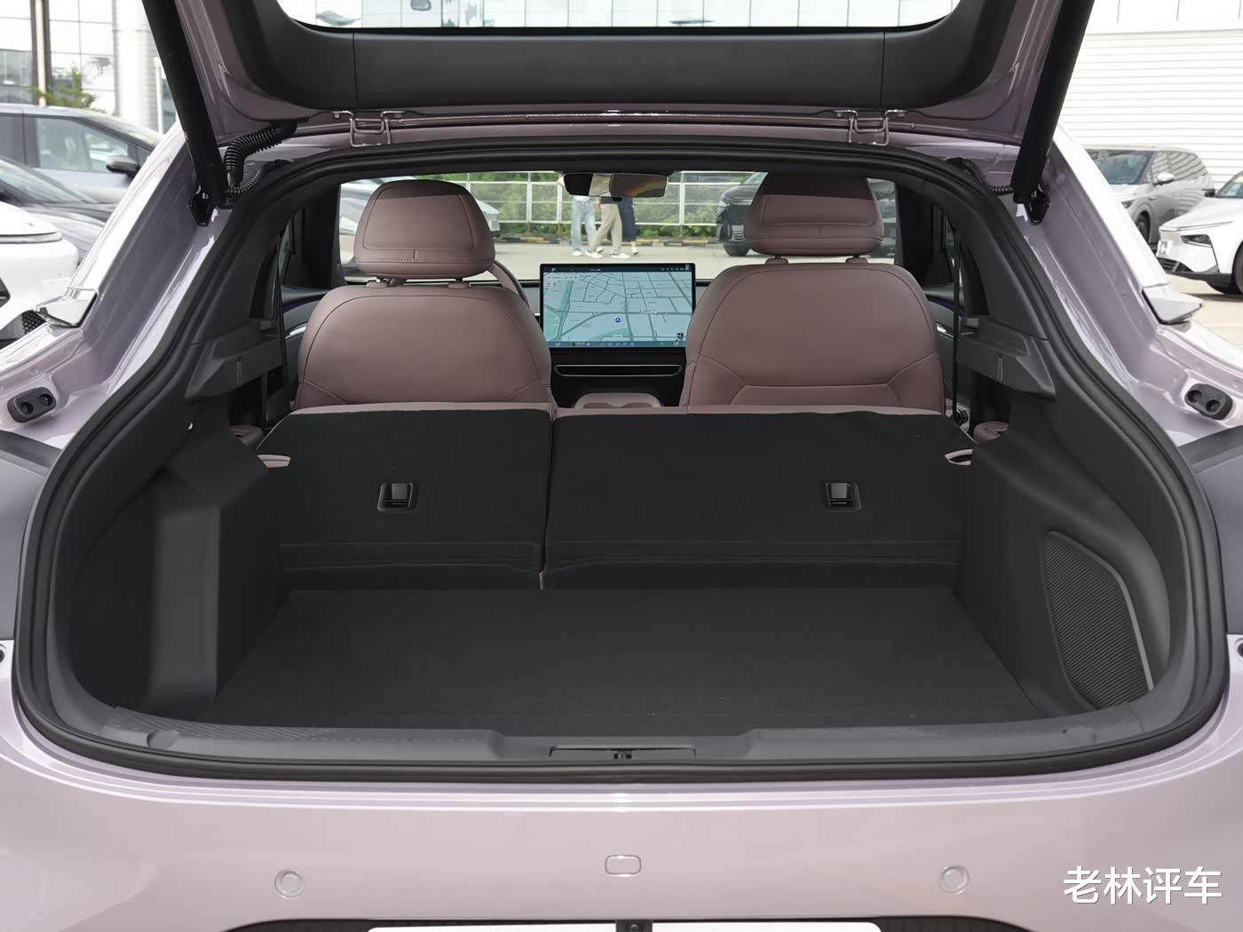 小鹏MONA M03的后备箱容积为600L,它的后排座椅支持比例放倒,可以把后备箱容积拓展到1600L,装载效果也不错。
