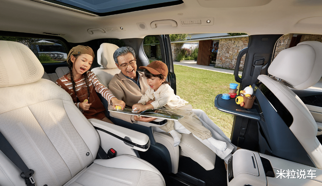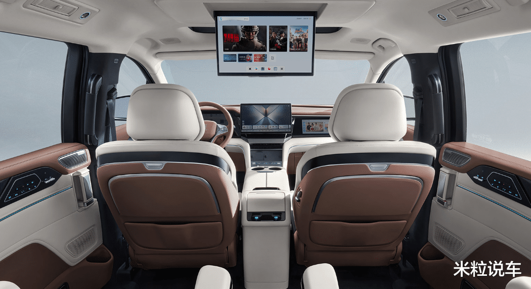 整个内饰布局采用了Di-Link100的数字智能座舱系统,不仅拥有双侧电动移滑门设计,并且还匹配了不可开启的全景天窗,15.6英寸的中控大屏,更是搭载了车载KTV以及一系列热门的应用。此外,座椅是带有加热,通风,按摩以及头枕,音响功能的,并且还拥有后排独立座椅,独立小桌板配置。