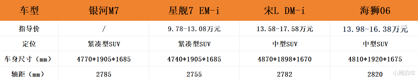 总的来说,不同于星舰7 EM-i与宋Pro DM-i在尺寸上形成的错位优势,银河M7的尺寸反倒是与宋L DM-i极为接近,甚至对比海狮06新能源还有着明显的劣势,并不像吉利银河一贯的做事风格,或许这也意味着银河M7或许与宋L DM-i在价格上不会有很高的重叠度,参考星舰7 EM-i的起售价格已经来到了8万多,因此银河M7的起售价格很有可能在11万元上下。对此,你怎么看呢?