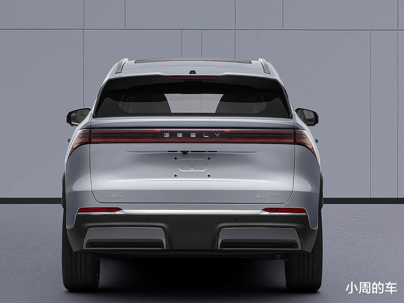 来到车尾,银河M7依旧是采用了家族惯用的“一”字形尾灯组,与星舰7 EM-i不同的是,银河M7两侧的尾灯组延伸至后翼子板位置后开始向下走,点亮后算是具有一定的辨识度。在后保险杠下方,设计师还为它安排了双段式的导流板,意在增强它的运动气息。