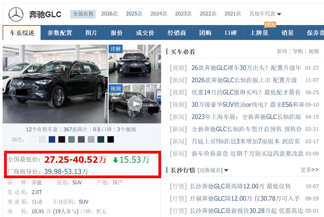 不过,用网友们的话来说,奔驰此番给旗下4款车型开启官降,也只不过是做做样子、搞一波话题热度、纯粹为了博眼球而已。为啥呢?因为在终端,奔驰GLC现在的最低价格已经来到了27、28万元左右,实际降价十一二万有余。