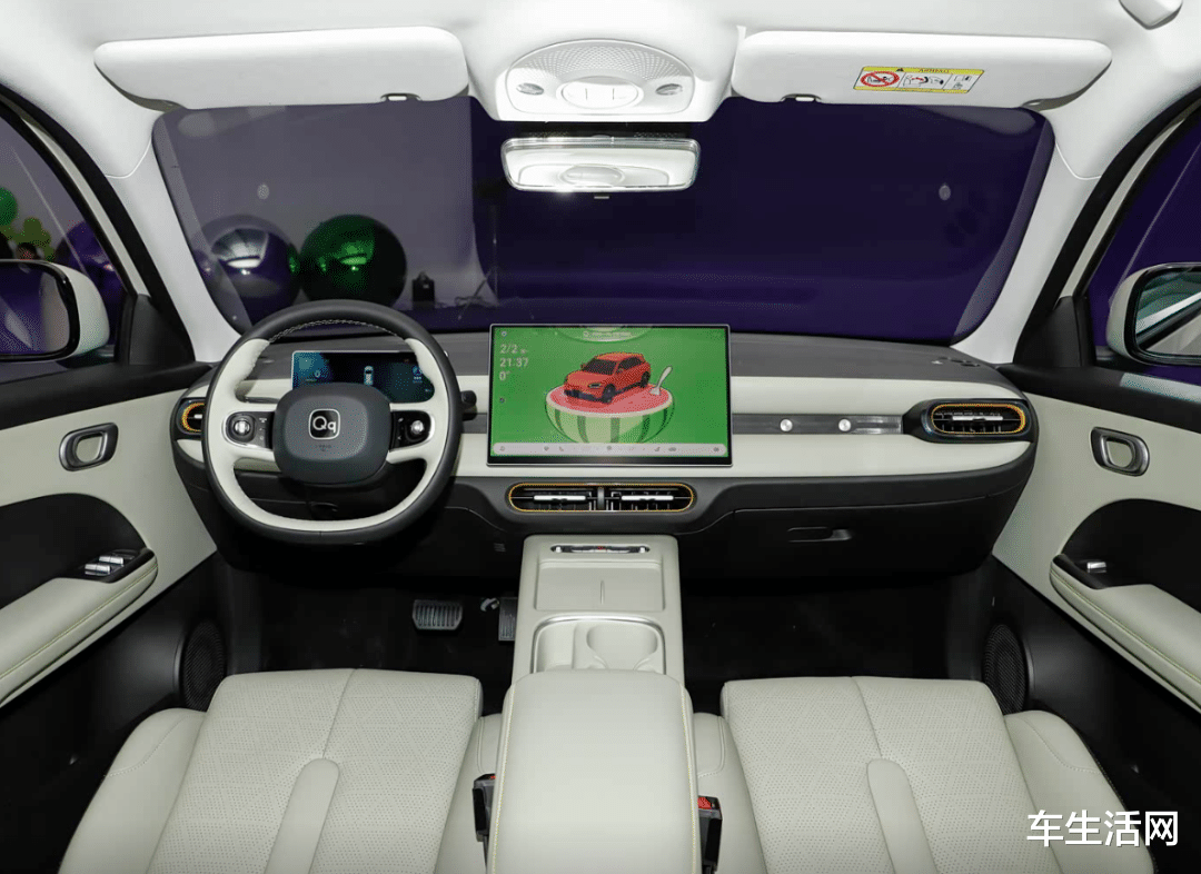 外观上,新车延续QQ家族呆萌气质,融入新能源科技感。“轻盈几何”设计语言搭配封闭式前脸、椭圆形矩阵大灯,前包围熏黑饰板与银色线条提升层次感。车身侧面圆润,悬浮式车顶、双色低风阻轮毂贴合年轻用户与宝妈审美,C柱“Q”字标识唤醒情怀。