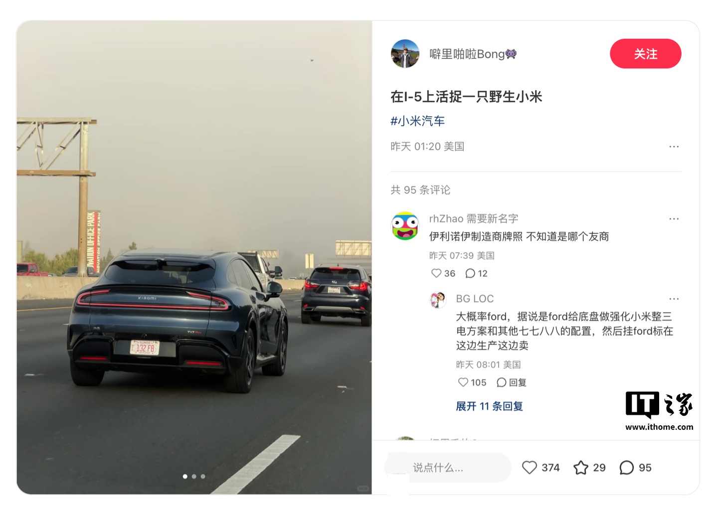 该照片最早出现在小红书平台,照片中的小米YU7Max在I-5行驶,车牌显示为伊利诺伊州制造商牌照。正是这一点,点燃了外界关于Rivian测试车的讨论。