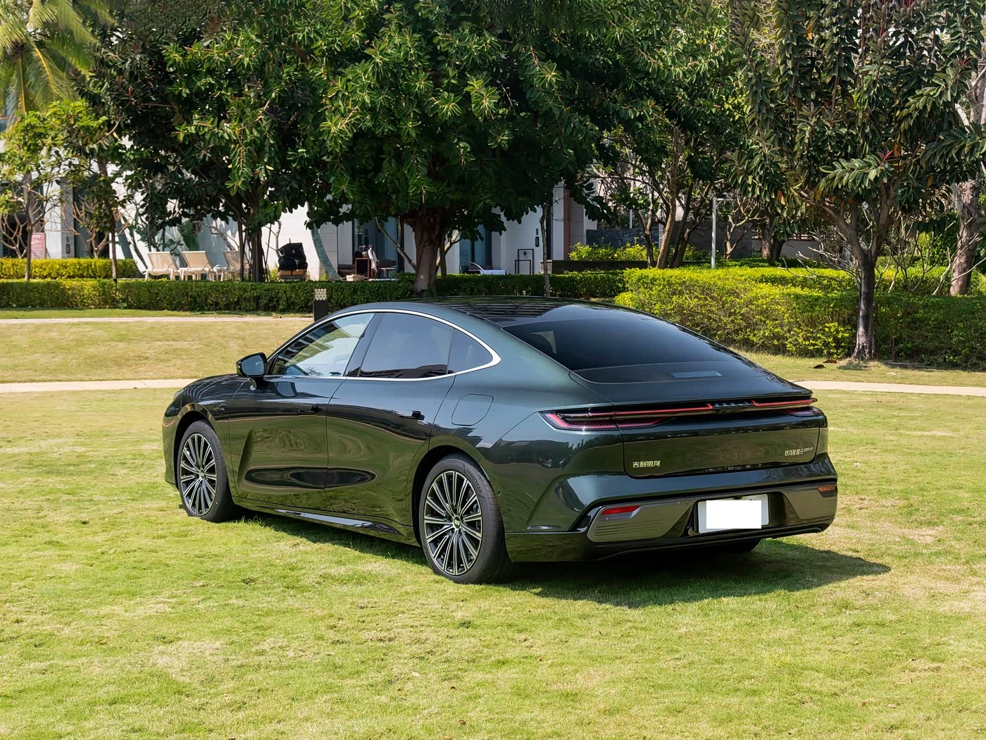 再来看车身侧面部分,星耀8的车身尺寸达到5018mm×1918mm×1480mm,轴距2928mm,在同级别车型中处于领先地位。设计师通过“润玉流光”的型面处理,使车身侧面呈现出如玉石般温润的光影效果。隐藏式门把手与18英寸多辐式轮毂的组合,既降低了风阻,又强化了侧面的运动感。车侧最显著的特征是“溜背式”C柱设计,其线条从A柱延伸至C柱,形成流畅的弧形过渡,不仅提升了空气动力学性能,更赋予车辆轿跑般的视觉张力。B柱与C柱之间的三角窗设计,既保证了后排乘客的视野,又通过镀铬装饰条强化了车身的精致感。