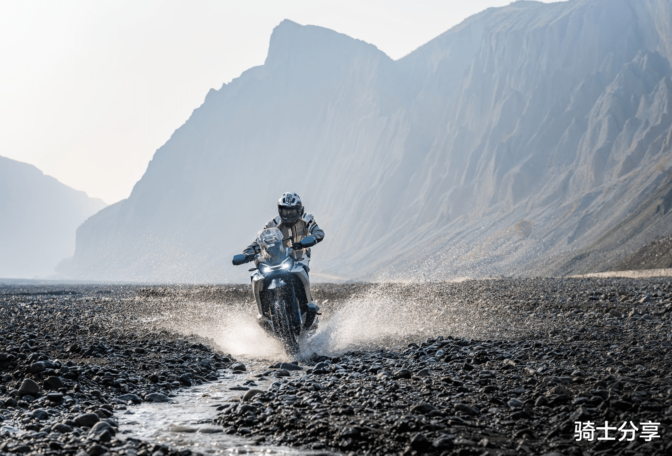 另外,还配套有22.5升的低重心马鞍油箱、20段可调转向阻尼系统、230mm超长悬挂、前21后18寸大尺寸辐条轮毂、倍耐力STR全地形轮胎、如此一来,它的离地间隙达到了240mm,进而就可以无惧路况、皆如坦途。