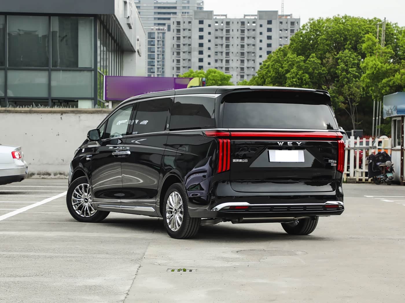 再来看车身侧面部分,车身侧面线条平直流畅,“水天一色”贯穿式腰线从车头延伸至车尾,拉伸车身视觉长度,搭配悬浮式车顶与19英寸多辐式豪华轮毂,尽显优雅修长。车窗周围配备高亮镀铬饰条,车门下方加入隐藏式电动踏板与后排双层踏板,支持车门联动开启,方便老人与小孩上下车,贴合家庭用户核心需求。车身尺寸方面,魏牌高山8较高山7全面提升,长宽高分别达到5280/1960/1900mm,轴距延伸至3145mm,较高山7轴距增加60mm,车长增加230mm,凭借新能源专属平台优势,实现超高空间利用率,