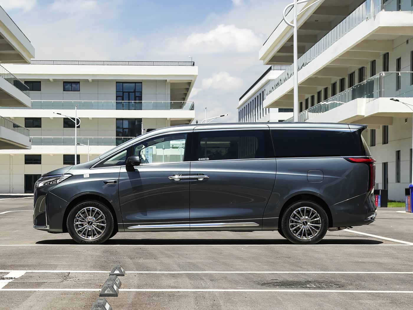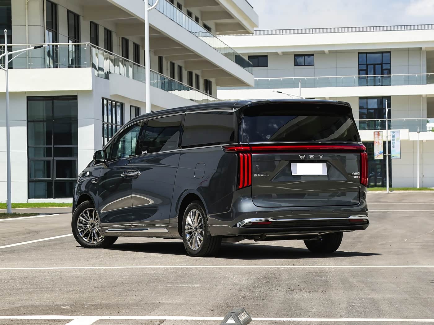 再来看车身侧面部分,车身侧面线条平直流畅,“水天一色”贯穿式腰线从车头延伸至车尾,拉伸车身视觉长度,搭配悬浮式车顶与20英寸多辐式豪华轮毂,尽显优雅大气的旗舰气场。车身尺寸方面,魏牌高山9较高山8全面升级,长宽高分别达到5410/1960/1890mm,轴距延伸至3275mm,较高山8轴距增加130mm、车长增加130mm,凭借新能源专属平台优势,实现超高空间利用率,“得房率”进一步提升,彻底告别MPV第三排局促的痛点,专为六座尊享体验量身打造。