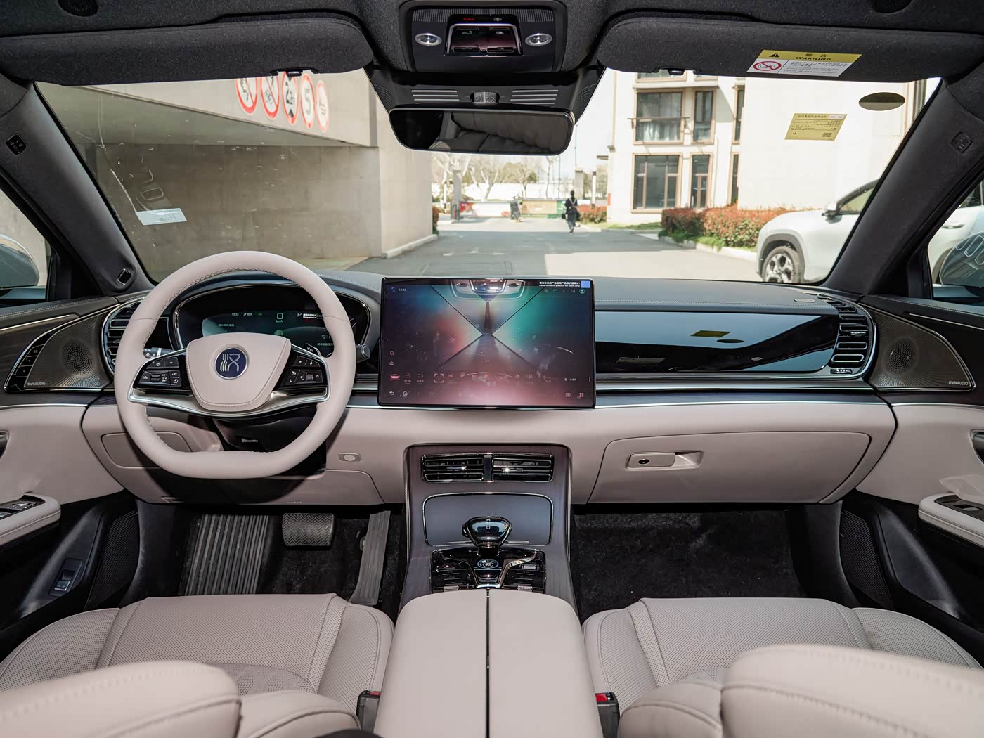 再来看车尾部分,尾部保留经典贯穿式中国结尾灯,内部采用“中国结”元素设计,蓝色“天神之眼”尾标暗示高阶智驾系统的搭载,顶配车型配备激光雷达,进一步提升科技辨识度。后包围区域采用黑化处理,与前脸镀铬饰条形成闭环呼应,新增雾灯与反光条布局,强化夜间行车安全性。整体尾部设计在简洁中融入细节层次,如熏黑轮毂与车身同色处理,使车辆在静止时亦显蓄势待发之势,完美融合家族传承与现代审美。