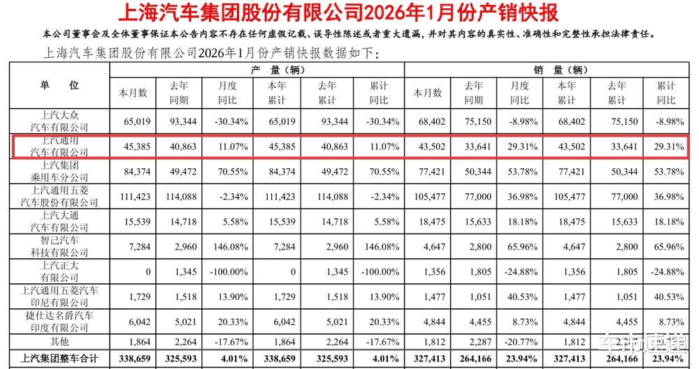 继奇瑞汽车、吉利汽车、广汽丰田和比亚迪等之后,作为上汽集团销量主力之一的上汽通用,也晒出了2026年开年首月的成绩单,虽然说并没有上汽通用五菱、比亚迪的市场表现抢眼,但实现29.3%的同比增长,也就意味着上汽通用在销量回暖路上迈出了喜人的一步。