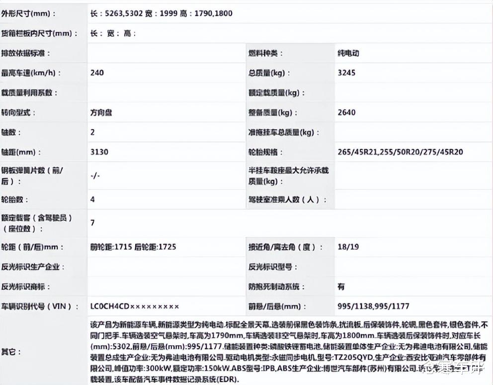 这么重的车,申报信息里电机最大功率才300kW?我非常希望这只是单电机的参数,或者是低配版。
