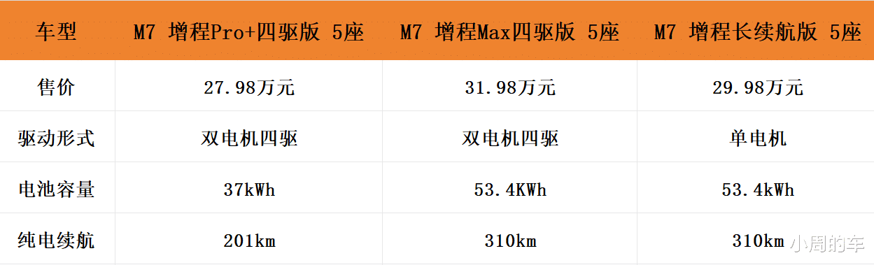 目前在售的问界M8全系均为四驱版本,起售价为35.98万元,并没有两驱版本作为对照,不过,自家的问界M7倒是给出了参考。就在1月份,问界M7新增了一款增程长续航版本,定价为29.98万元(5座版本),售价比M7 增程Pro+四驱版贵出了2万元,但比问界M7增程四驱版Max便宜了2万元。