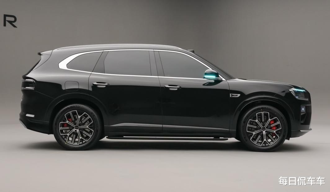 车身尺寸,长宽高分别为5100/1998/1780mm,轴距为3069mm。相比9X小了一圈,而且由于它定位是大五座,所以无需刻意追求座舱空间,车顶略带下压、尾窗有斜倾度、后方车肩的内收幅度也比较大。前悬很短、后悬略长,接近角和离去角分别为20度和22度,离地间隙也不算高,是一般城市SUV的水平,不过依然增加了侧边的电动脚踏板。细节上,侧窗采用了水切式平整化设计,立柱与玻璃同平面,更有高级感。采用传统的手拉式门把手,满足最新的法规要求。