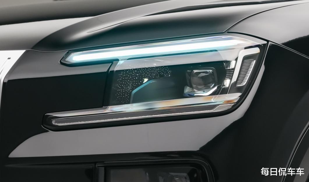 头灯造型与9X的风格也相似,分体式灯组上下垂直布局,上方灯组又增加了高低两道日行灯带,顶部兼具小蓝灯功能。提供光语智能高清投影大灯,可投射2.4米宽光幕,显示转向、礼让行人等光轨画面,智能化同样比较高。