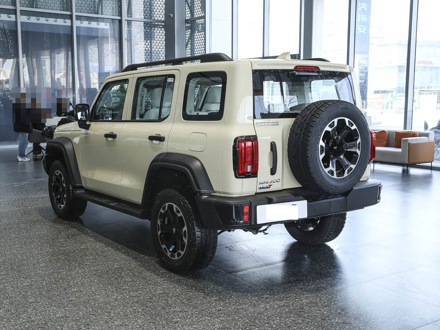再来看车尾部分,坦克300新能源的车尾设计与车头、车身风格保持高度统一,方正饱满,经典元素与实用功能完美融合,既延续了硬派越野的标志性设计,又兼顾了日常使用的便捷性。车尾最具标志性的莫过于外挂式全尺寸备胎,采用侧开式设计,不仅彰显了硬派越野的身份,还能有效节省后备厢空间,备胎上方配备外置式刹车灯,提升行车安全性,同时备胎罩采用与车身同色或黑色设计,可根据车型配置选择,进一步提升整车的协调性。尾灯组采用竖置设计,与车头圆形大灯形成呼应,造型简洁大气,点亮后辨识度极高。