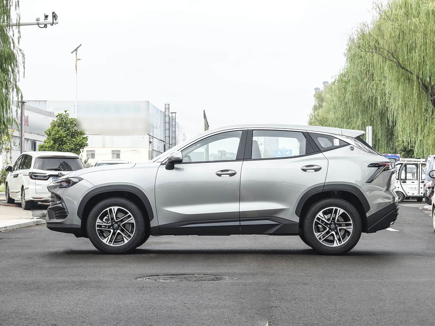 再来看车身侧面部分,车身侧面线条流畅,溜背式车顶与上扬腰线勾勒出轿跑SUV的蓄势姿态。4600mm×1900mm×1685mm的尺寸中,1900mm的车宽配合2720mm长轴距,实现空间最大化利用。 轮拱肌理饱满,搭配大尺寸厚壁轮胎,既强化运动感又保障稳定性。侧围设计避免冗余,强化战斗氛围。 这种设计在紧凑型SUV中独树一帜,兼顾美学与功能性。