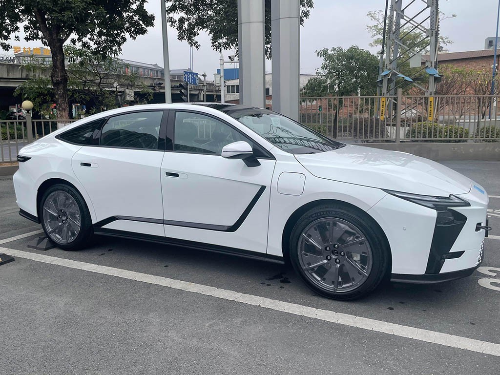 来到侧面,整体呈现出大溜背造型,加之上扬的立体腰线,以营造出蓄势待发的姿态。此外,新车还配备了酷似比亚迪腾势Z9GT那样的“L”形熏黑饰条,单就视觉效果来说,我觉得是有点“画虎不成反类犬”的感觉,你们觉得呢?