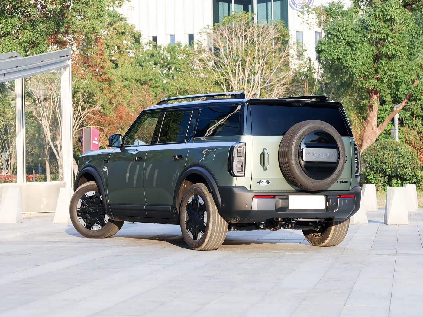 再来看车尾部分,车尾设计延续了烈马家族的经典元素,侧开式尾门和全尺寸外挂备胎成为硬派越野的标志性符号,备胎罩上压印“BRONCO”字样与车头格栅形成呼应,强化品牌一致性。 竖向矩形尾灯采用LED光源,精致且辨识度高,夜间点亮时提升行车安全性。 尾部布局注重功能性与美学平衡,外挂备胎不占用行李箱空间,尾门集成铝合金材质的多功能操作台,搭配磁吸面板和网格储物格。