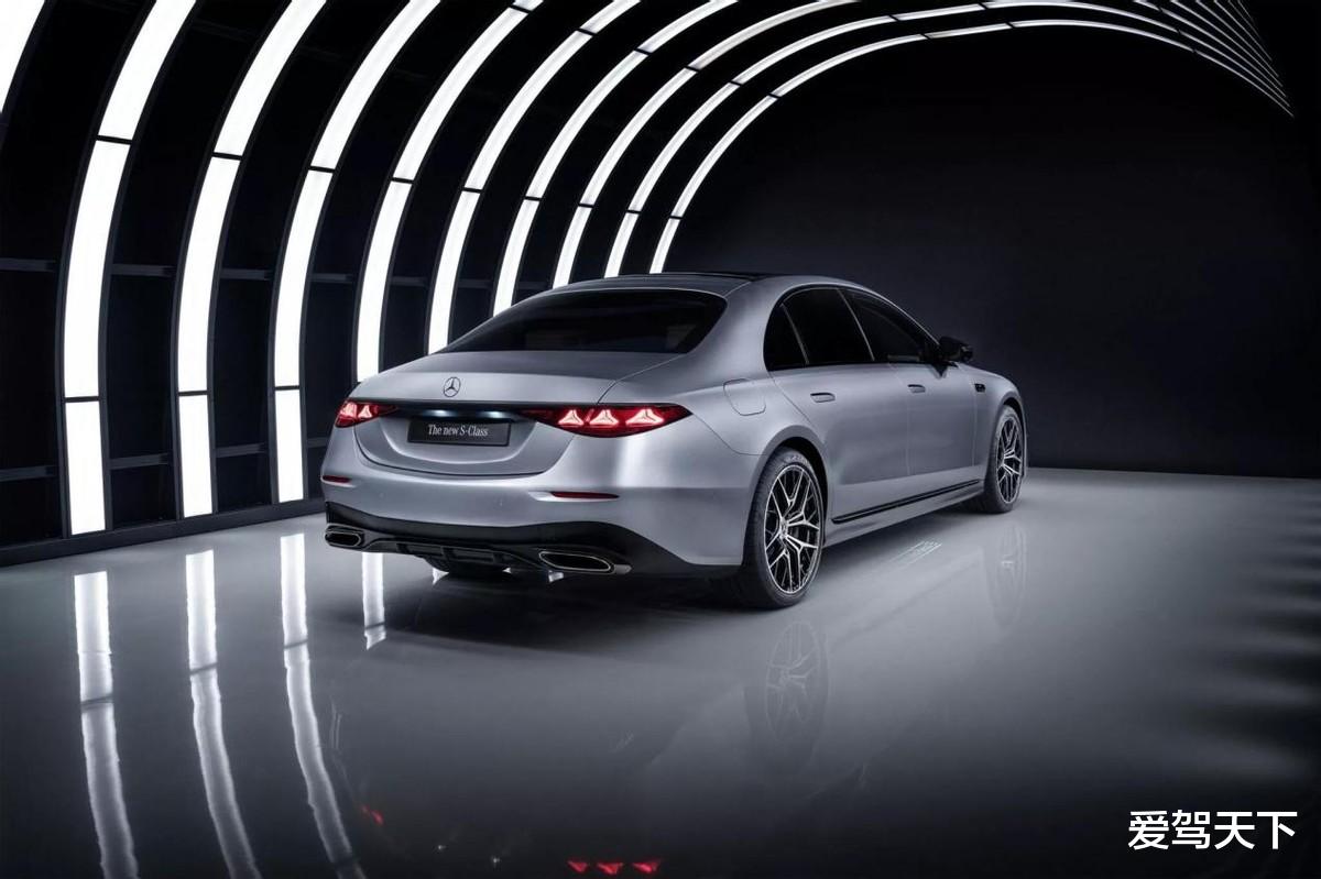 车身姿态还是与现款一样优雅舒展,但前翼子板处新增了辅助驾驶传感器。此外,新款奔驰S级还升级了轮毂样式,并推出专属定制服务,提供超过150款车漆以及400种内饰配色方案。车尾最大的不同是,两侧尾灯各加入三颗“三叉星徽”光源,后包围略有调整,扁平式排气布局仍保留。