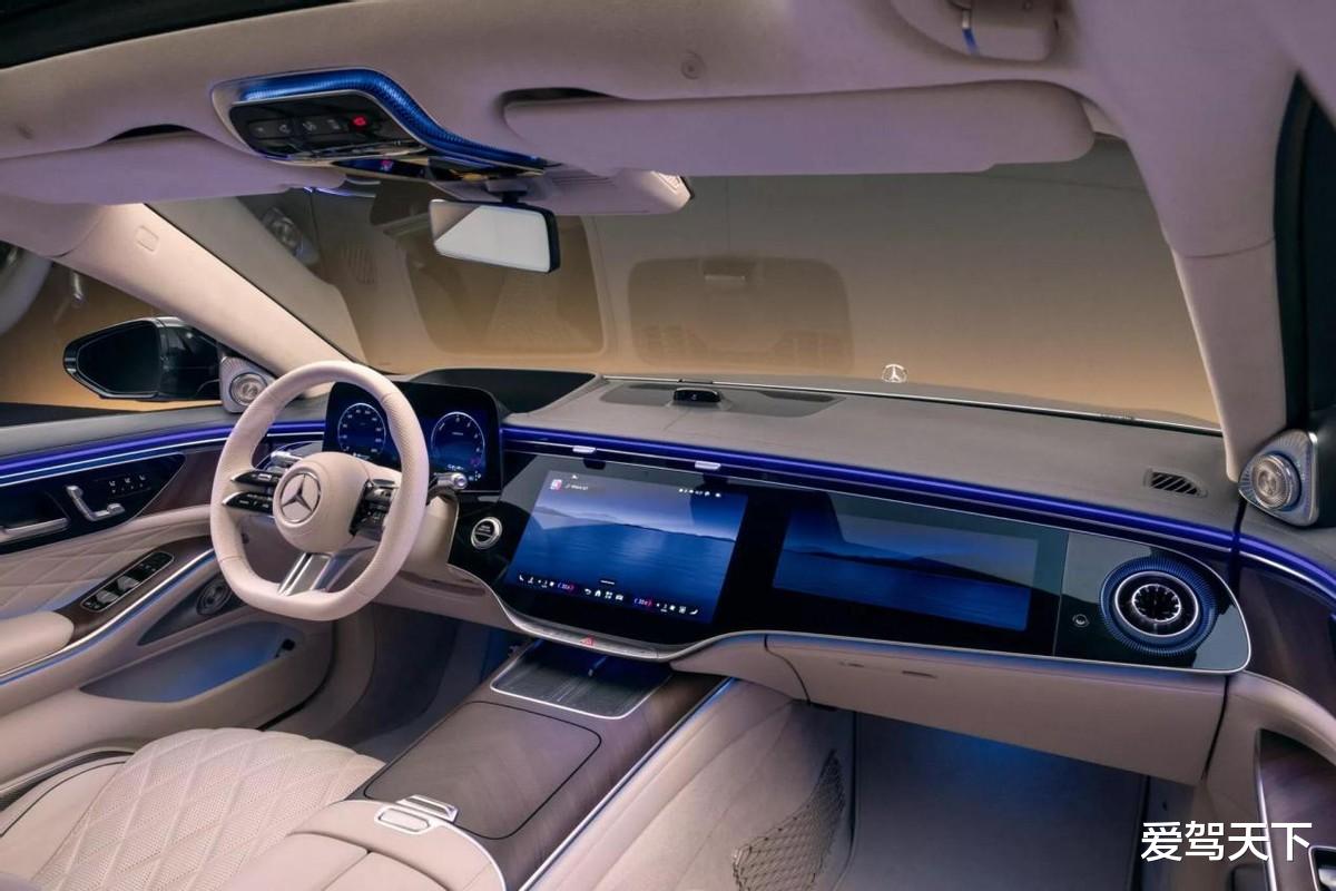 如果说外观是微整形,座舱就是大换血,新款奔驰S级直接用MBUX超级屏取代现款车型的纵向中控屏,呈现效果与奔驰E级颇为相似。这一改动不仅让副驾和后排乘客都能享受到娱乐屏,科技感也实实在在地跟了上来。此外,新款奔驰S级还更换了全新样式的多功能方向盘,并搭载奔驰最新的MB.OS操作系统。在辅助驾驶方面,新款奔驰S级搭载全新城区及高速领航辅助驾驶系统。