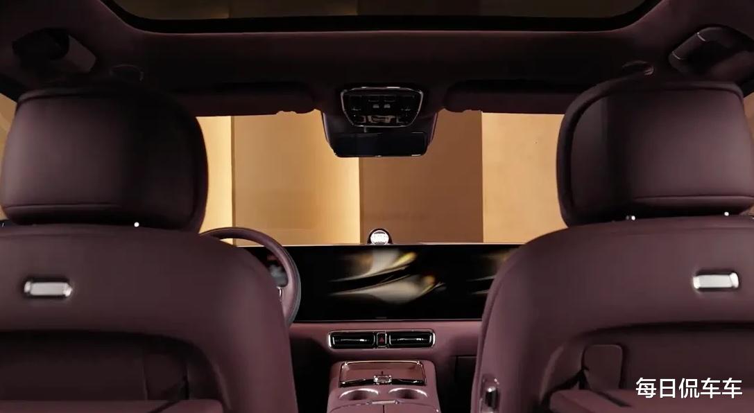 车尾造型略带一点倾斜,车顶也略带下压,不过整体上依然方正,保证空间够大。布置了顶置环绕式尾翼,并将后雨刮隐藏在尾翼下方,使得尾窗干净整洁。贯穿式尾灯依然有很多星钻的装饰,两侧有小蓝灯。底部采用排气管隐藏式布置,增加镀铬条提升精致感。