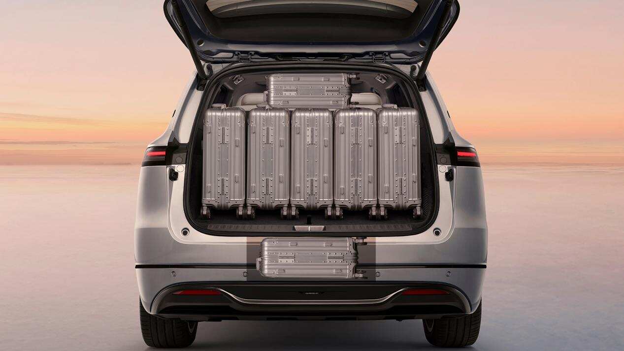 满载6人带不下行李,这是很多6座SUV的尴尬所在,深蓝S09在乘员舱和储物仓之间做的较为均衡,既保证了舒适的驾乘空间,也提供了较大的存储空间,三排立起来,满载6人的情况下,后备厢容积有427升,能塞下7个20寸的登机箱!这容量,一家六口的随身行李加上给亲戚朋友的礼盒,基本上都能安排得明明白白。